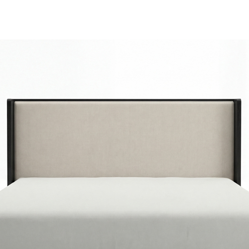 The headboard is completely upholstered in premium material for comfortable leaning back. It is medium High and rectangular in shape.