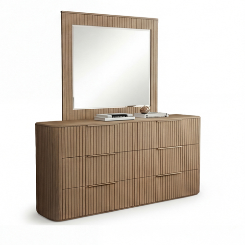 Discover a refined bedroom collection where timeless craftmanship meets modern innovation. The fluted detailing in a warm oak finish brings a classic architectural elegance, while the upholstered bed introduces a touch of contemporary luxury. A perfect harmony of tradition and modernity-designed to elevate your everyday living.