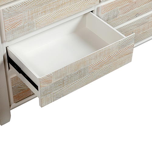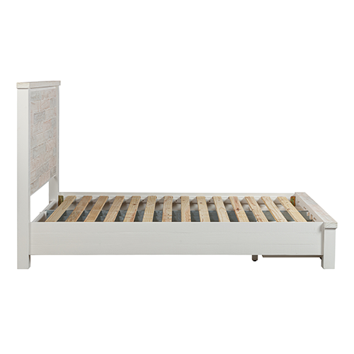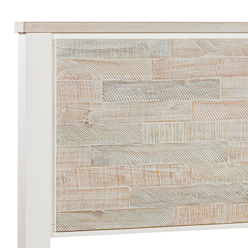 It has medium high headboard which is square in shape. This feature is suitable for comfortable leaning back. Combination of Miami White and Coastal Grey colour presents a stylish look.