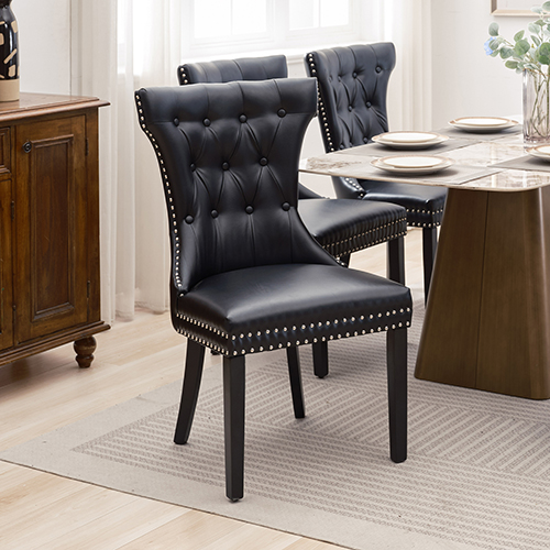 This contemporary, wooden dining chair is the ideal addition for your dining area. This generously sized chair features a padded, upholstered leatherette seat, high high back rest and solid pine wood legs for strong support.