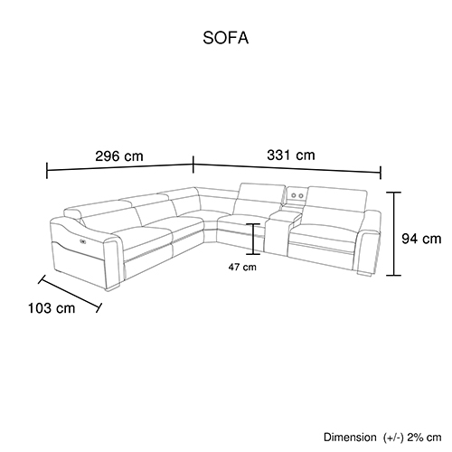 Henley Grey Chenille Reclining Sectional Sofa with Power Seats Adjustable Headrests & Storage Console