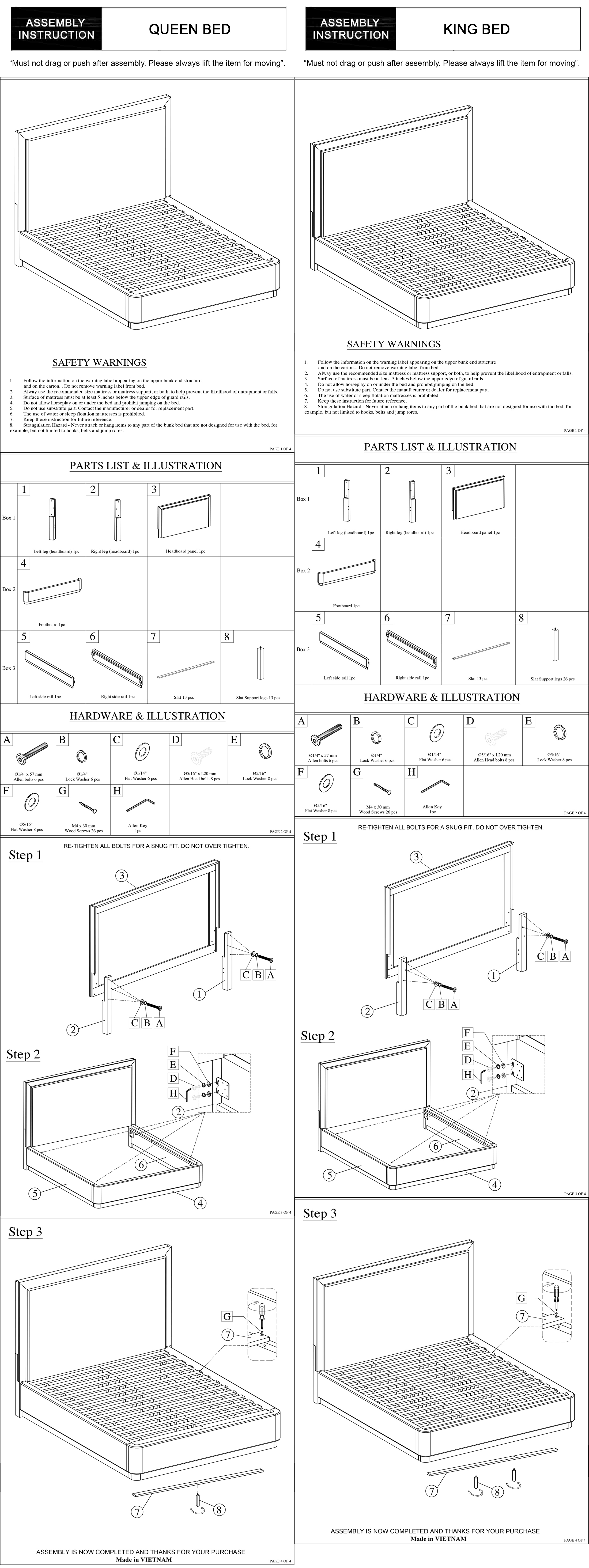 King: Box 1: L-220 x W-121 x H-17, Box 2: L-209 x W-47 x H-21, Box 3: L-223 x W-48 x H-27