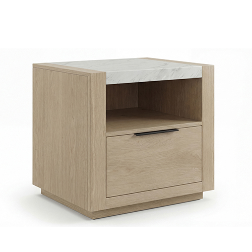 Savannah Bedside Table Light Grey Colour Quartz Stone Top Storage Space