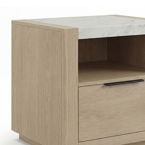 Experience redefined comfort and sophistication with our Savannah bedroom collection. The bedside tables are elevated with exquisite quartz stone tops and integrated USB charging ports, blending luxurious materials with everyday convenience.