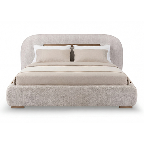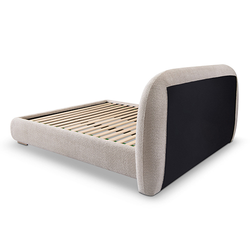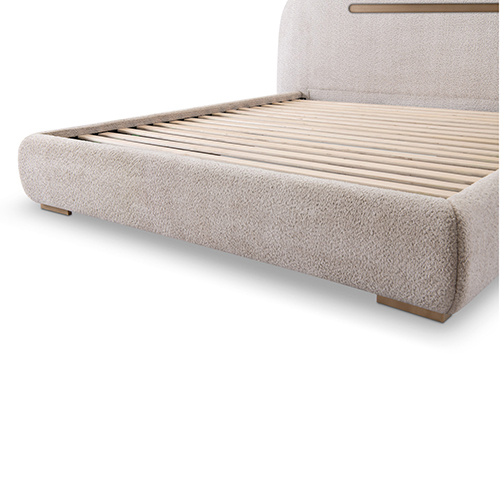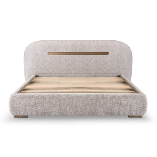 Poppy Bed Khaki Fabric Upholstery with Metal Support Frame